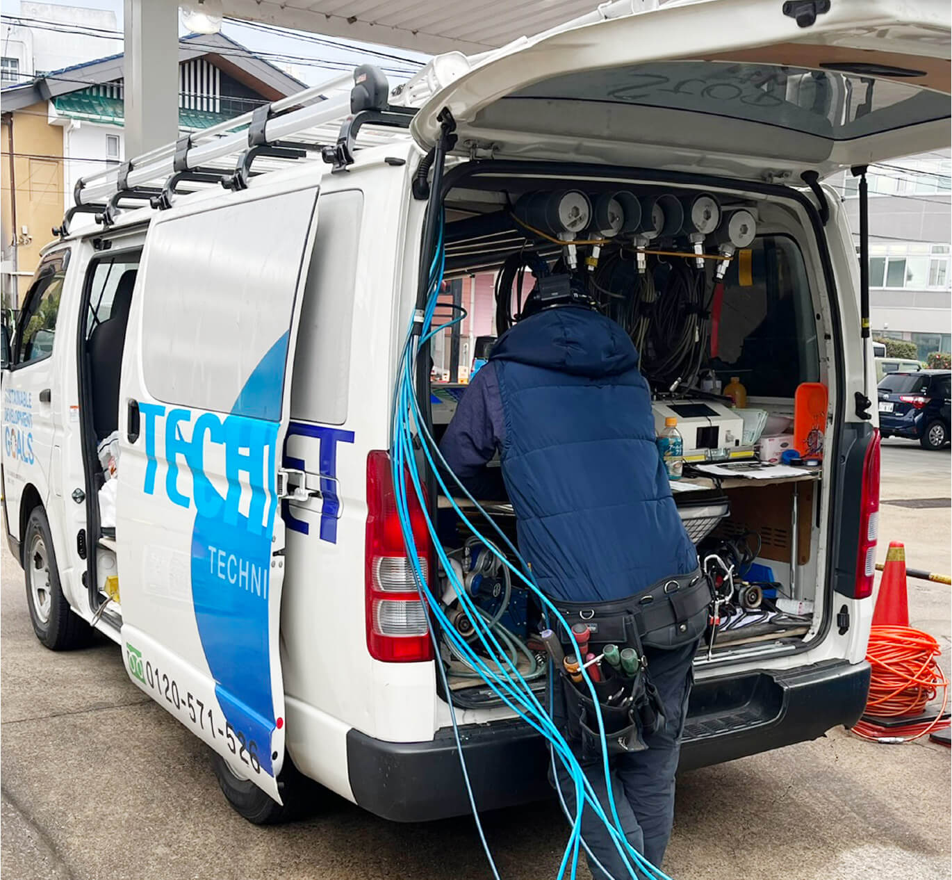 ガソリンスタンドや工場、学校などの施設で事故が起こらないよう、地下タンクや計量器などの設備を点検・保守管理する「設備保全・メンテナンス業務」を行います。